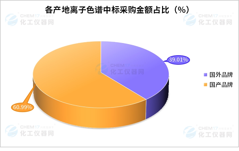 從“各產(chǎn)地離子色譜中標(biāo)采購金額占比”數(shù)據(jù)來看,9月國產(chǎn)品牌離子色譜儀的中標(biāo)金額1120.05萬元,約占9月離子色譜儀中標(biāo)總金額的60.99%;9月國外品牌離子色譜儀的中標(biāo)金額為716.35萬元,約占9月離子色譜儀中標(biāo)總金額的39.01%。