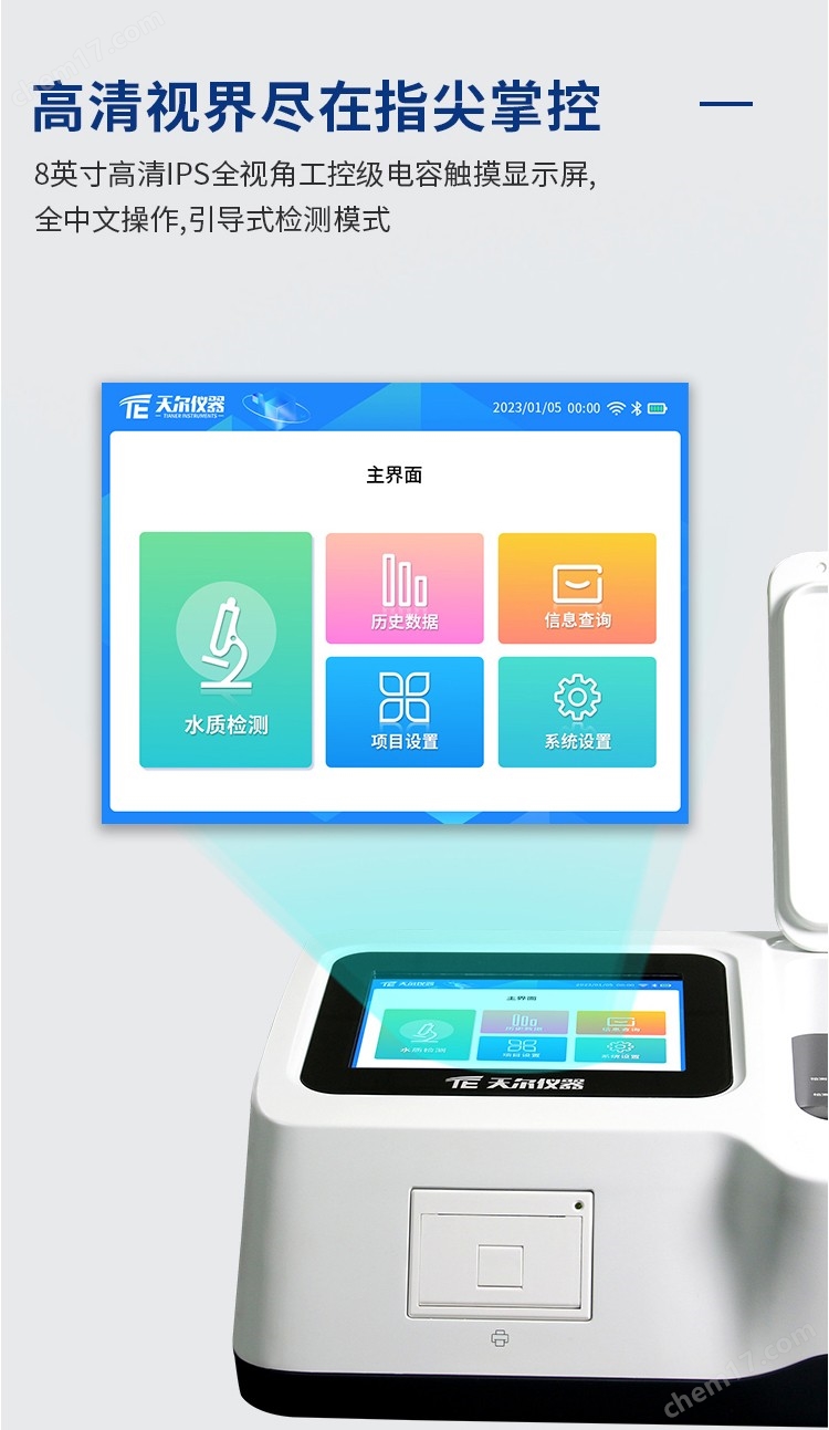 TE-5000Plus六價鉻檢測儀是一款集分光光度法與電極法于一體的實驗室高精度水質測定儀,依據(jù)環(huán)境標準研發(fā),可快速、準確的測定水中COD、氨氮、總磷、總氮、pH、溶解氧、電導率、ORP、葉綠素等上百種水中污染物,搭載8寸高清顯示屏,觸控式設計,靈敏度高,運用Tianer專用水質檢測系統(tǒng),準確測量,穩(wěn)定性強,自動化程度高.
